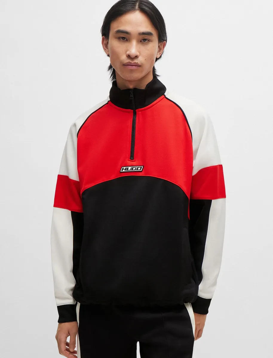 Áo nỉ vừa vặn thoải mái được pha trộn với chất liệu cotton của HUGO Menswear với các khối màu thể thao, miếng vá logo lấy cảm hứng từ xe đua.