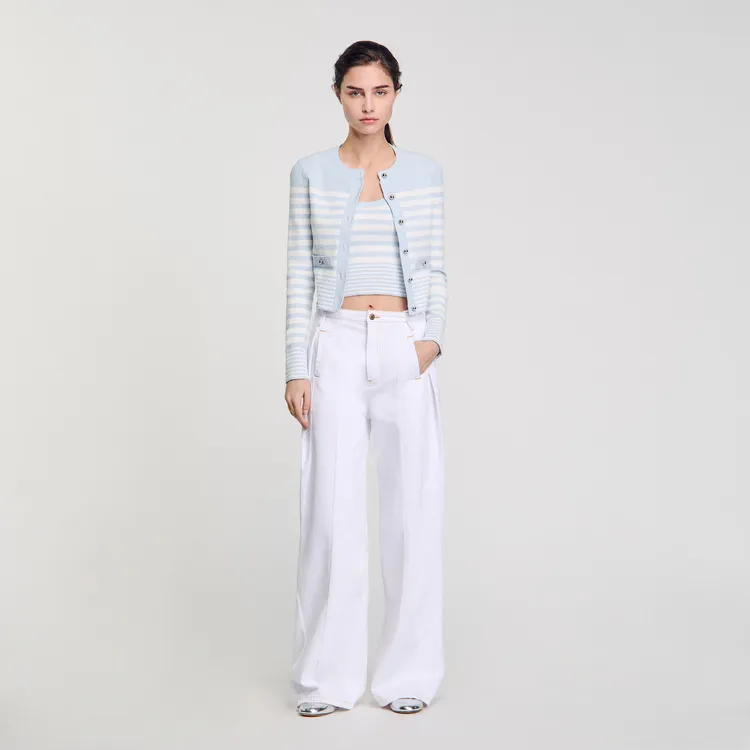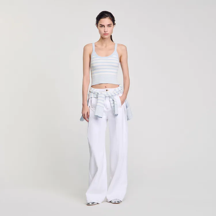Chân váy bồng dáng thẳng, làm từ vải linen hiệu ứng satin, có thắt lưng ren ở cạp quần với logo SANDRO.
