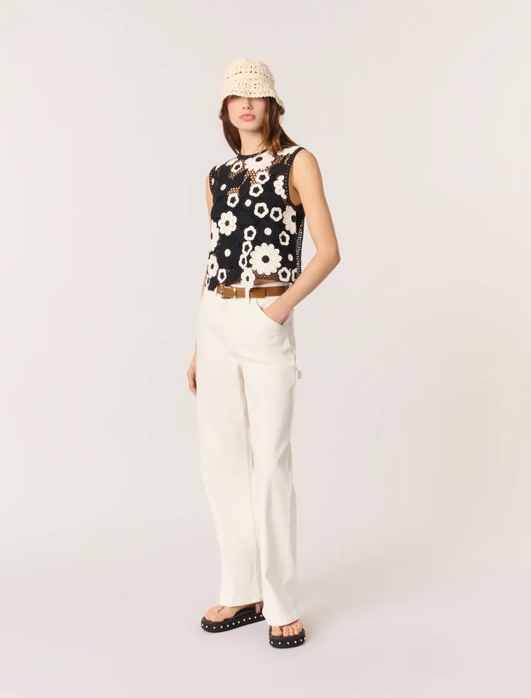 Với chất liệu thoải mái và màu sắc nhẹ nhàng, bộ sưu tập của chúng tôi tôn vinh một kiểu chủ nghĩa lãng mạn mới, nơi người phụ nữ Maje khẳng định bản thân một cách tự tin và dễ dàng mỗi ngày. Được làm từ cotton hữu cơ, những chiếc quần móc lưới crochet này tạo nên sự tương phản, nổi bật với chi tiết dệt thêu tạo hình những bông hoa xinh xắn. Lớp lót ngắn và dây thắt lưng co giãn đảm bảo vừa vặn hoàn hảo. Lý tưởng cho những ngày nắng, phối cùng áo sơ mi và sandal phù hợp để có vẻ ngoài cá tính