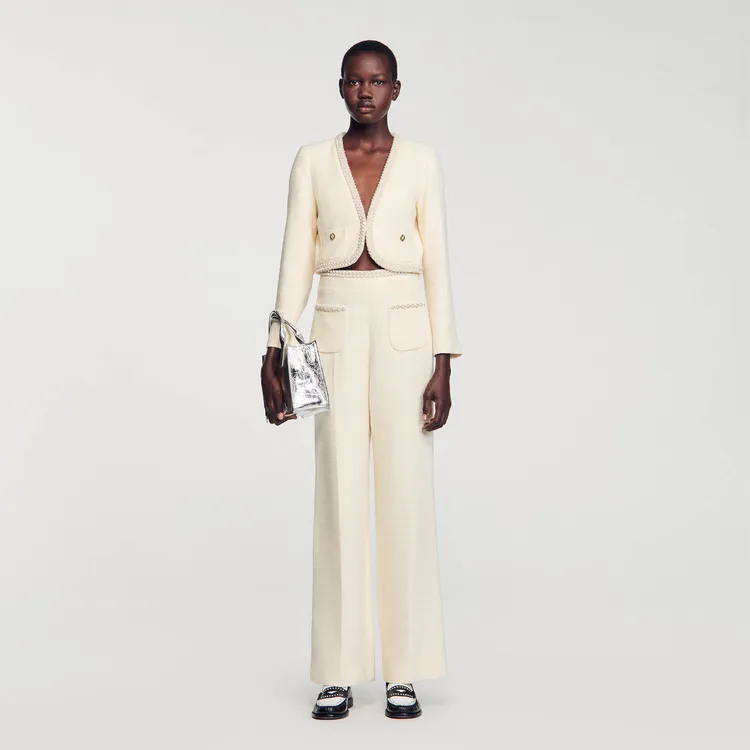 Cuối cùng, corpcore không đồng nghĩa với việc bó hẹp bản thân vào sự nhàm chán. Tín đồ thời trang đích thực luôn tìm được cách phối trang phục để khiến bản thân trở nên thú vị nơi văn phòng (tất nhiên là còn phù hợp với từng môi trường). Dành cho cô nàng thời trang, váy hai dây MAJE khéo léo tôn vinh đường nét cơ thể, kết hợp với tất lưới đen để cân bằng chất lịch sự, trao cho quý cô quyền lực mềm mại chốn văn phòng. Họa tiết mắt lưới đem tới hiệu ứng thị giác. Mọi thứ đều thật quyến rũ và chừng mực, từ đường chiết eo tới độ phồng nhẹ của chân váy.