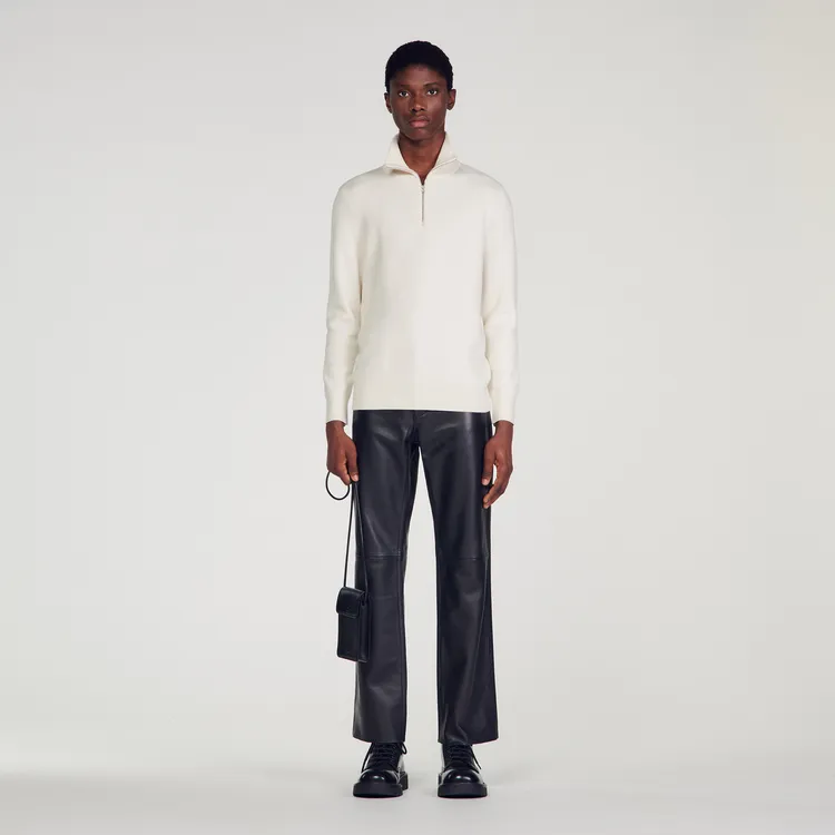 Kết hợp cùng phụ kiện da, quý ông chứng minh gu thời trang tinh tế, chú trọng tới phẩm chất và đường nét trang phục. Cách phối màu đen - đỏ không bao giờ lỗi mốt, ngay cả giữa những đợt lạnh đậm đà cuối cùng của năm nay.