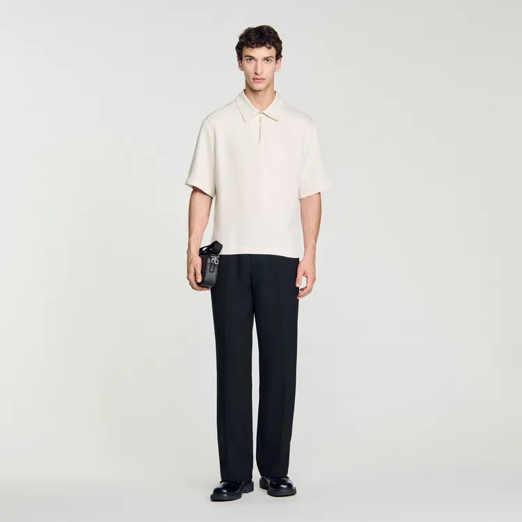 Thu nhỏ thành mặt dây chuyền tinh tế để làm duyên cho chiếc áo polo kéo khóa tối giản từ nhà mốt Pháp SANDRO