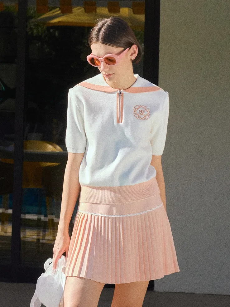 Golf là môn thể thao có trang phục thi đấu thời thượng và sang trọng bậc nhất, khi bản thân bộ môn đã được dành riêng cho tầng lớp tinh hoa. Những món đồ như áo knit polo mỏng nhẹ kết hợp cùng chân váy xếp li giúp quý cô chinh phục cả sân cỏ cũng như những chiều dạo phố chớm Thu